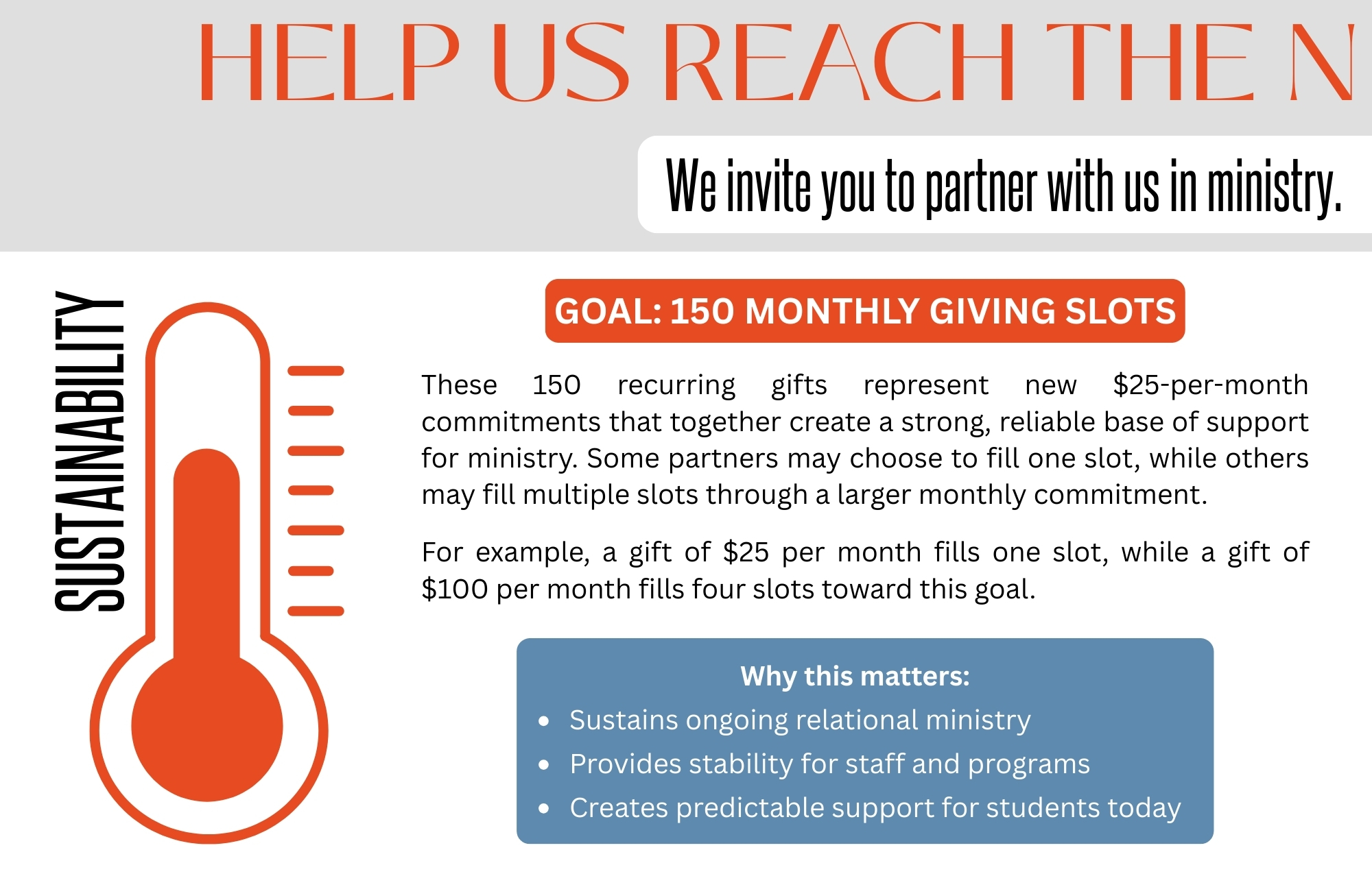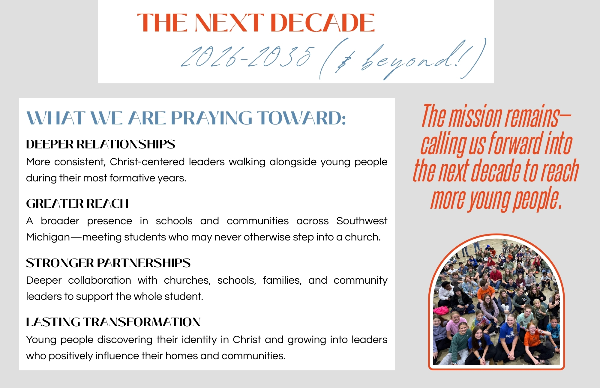 We invite you to partner with us in ministry. Will you say yes to furthering the next decade?
